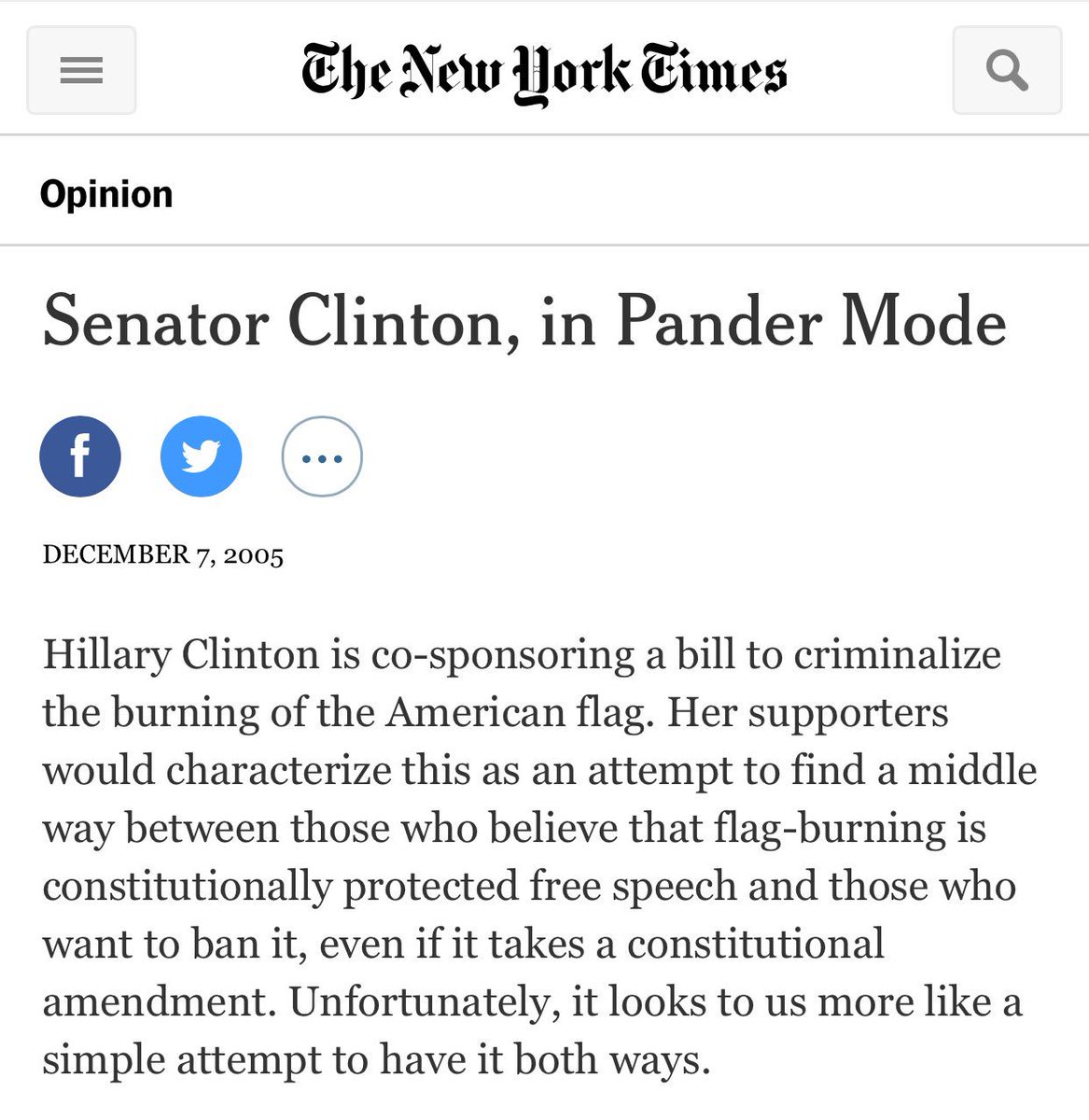 @NBCNews she tried to push an anti flag burning bill as a senator remember - 2 more replies