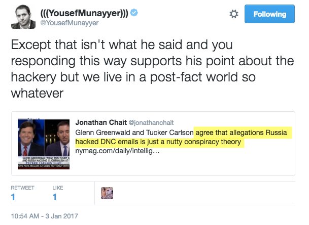 @ggreenwald Another self-inflicted gunshot to mainstream#fakenews media courtesy of@jonathanchait who continues getting#facts wrong. -