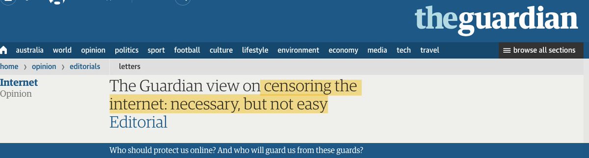 '...The Guardian, wedded to the idea of free speech'. Indeed. Much like ISIS are wedded to the idea of free love. https://amp.theguardian.com/commentisfree/2017/aug/21/the-guardian-view-on-censoring-the-internet-necessary-but-not-easy …