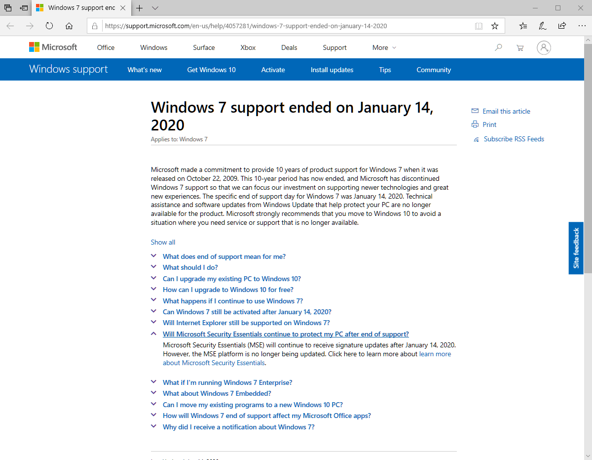 Antivirus for Windows 7: support continues