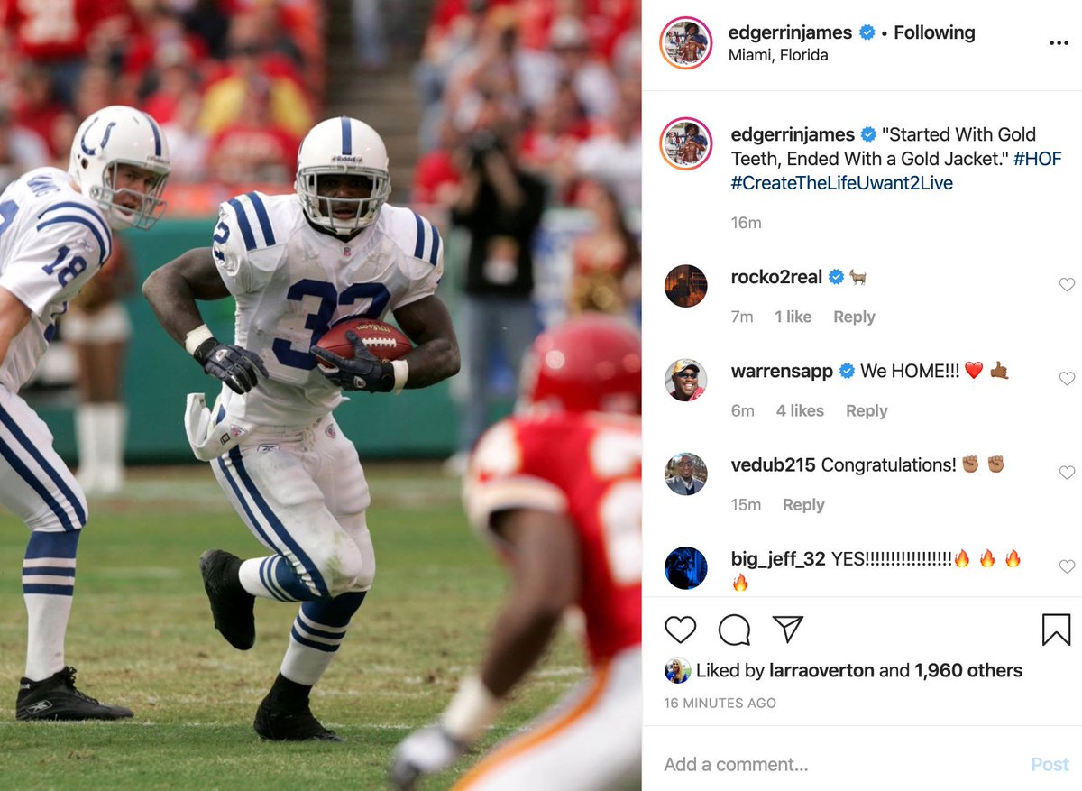Colts great Edgerrin James is officially a Hall of Famer. Congrats, Edge. Well deserved.pic.twitter.com/5OaPlq5zrK
