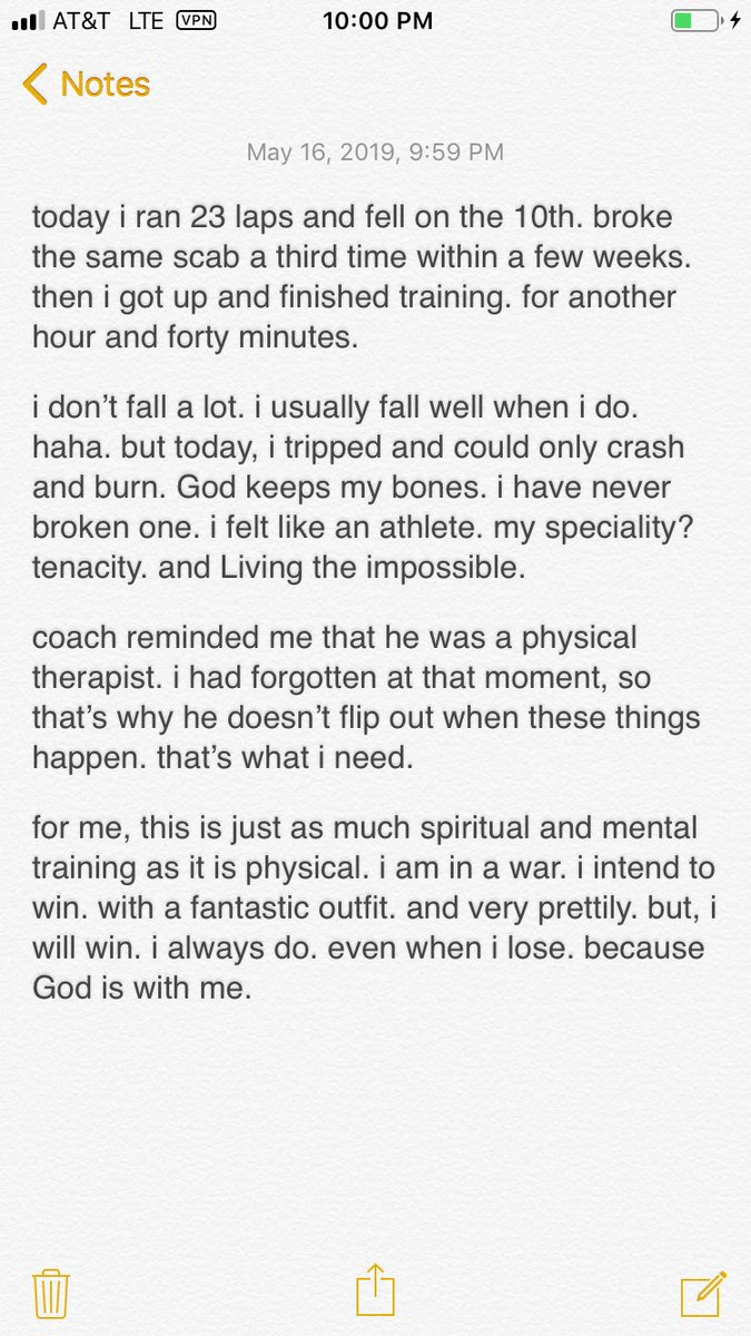 some thoughts on running 23 laps today, falling on the 10th, breaking the same scab three times and trying again. what cerebral palsy? 😉 #tenacitytrainingpic.twitter.com/VU198789L9