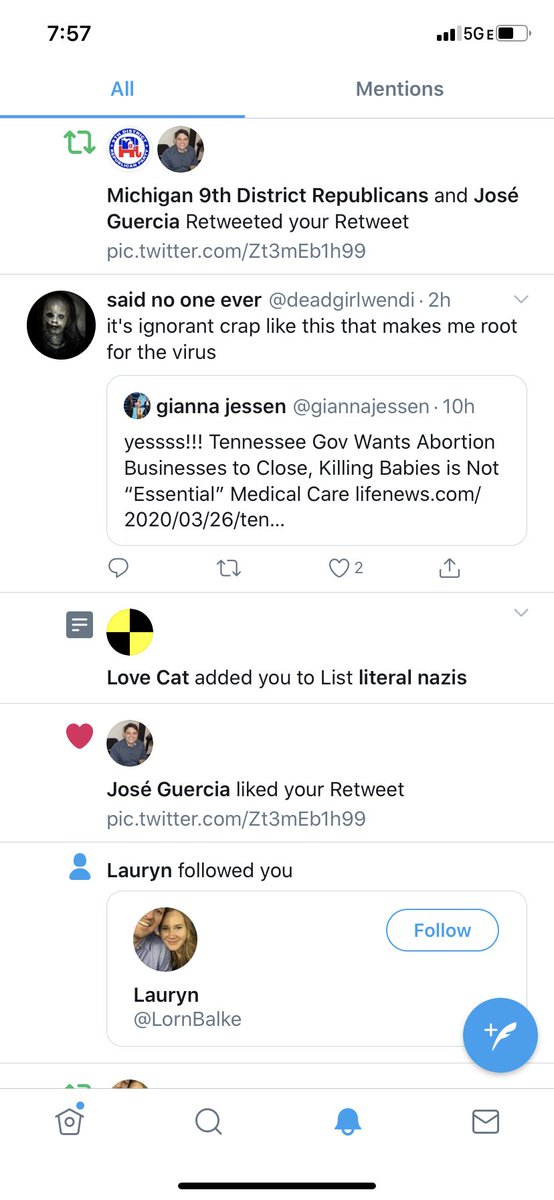 ' Love Cat' has added me to their list ' literal nazis.' i guess because i was born in an abortion clinic and refused to die.pic.twitter.com/14j3TNf14h