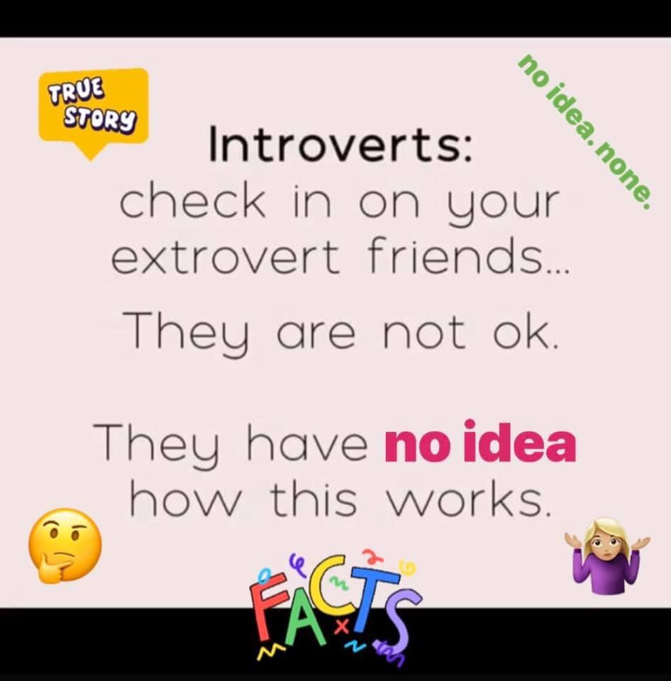 THIS. haha. i am introvert/ ambivert. i practically have to talk my extroverts of the ledge right now.