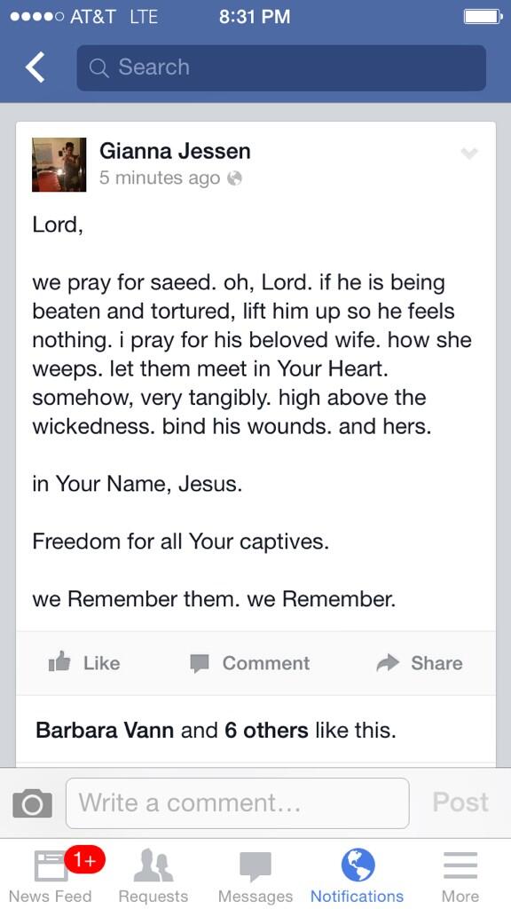 “@giannajessen: my prayer for saeed tonight. please pray and retweet. <3 pic.twitter.com/iSLb4IResg”