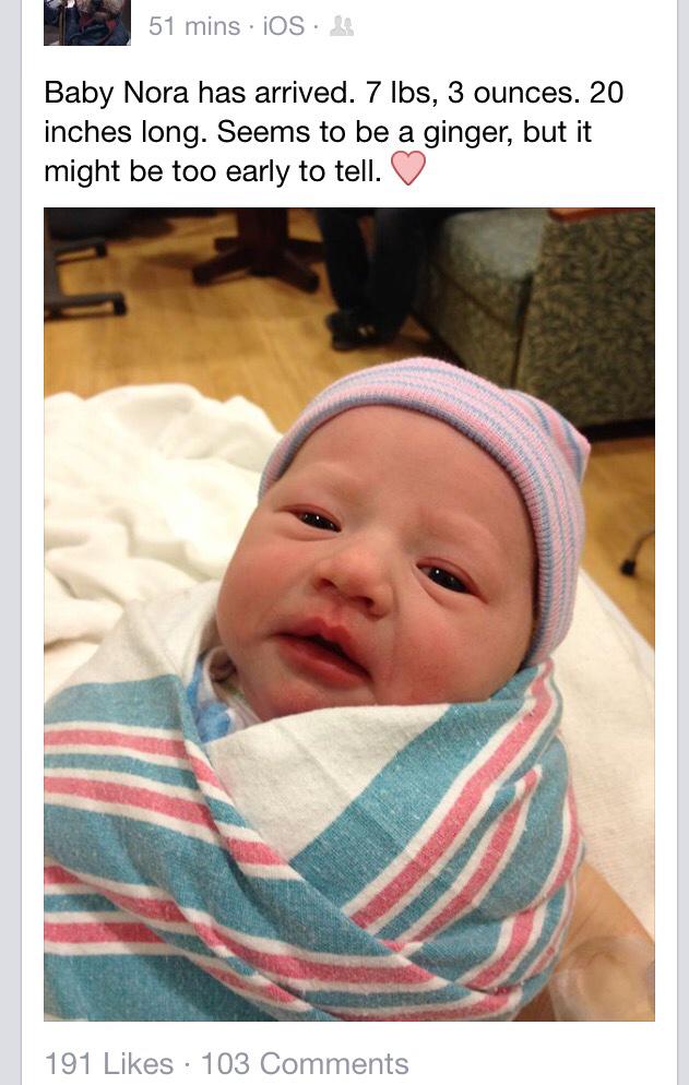 Aw so cute @giannajessen: my friend jenny gave birth to this little beauty! welcome, baby nora! you're a darling facepic.twitter.com/Bx58sbWLLG