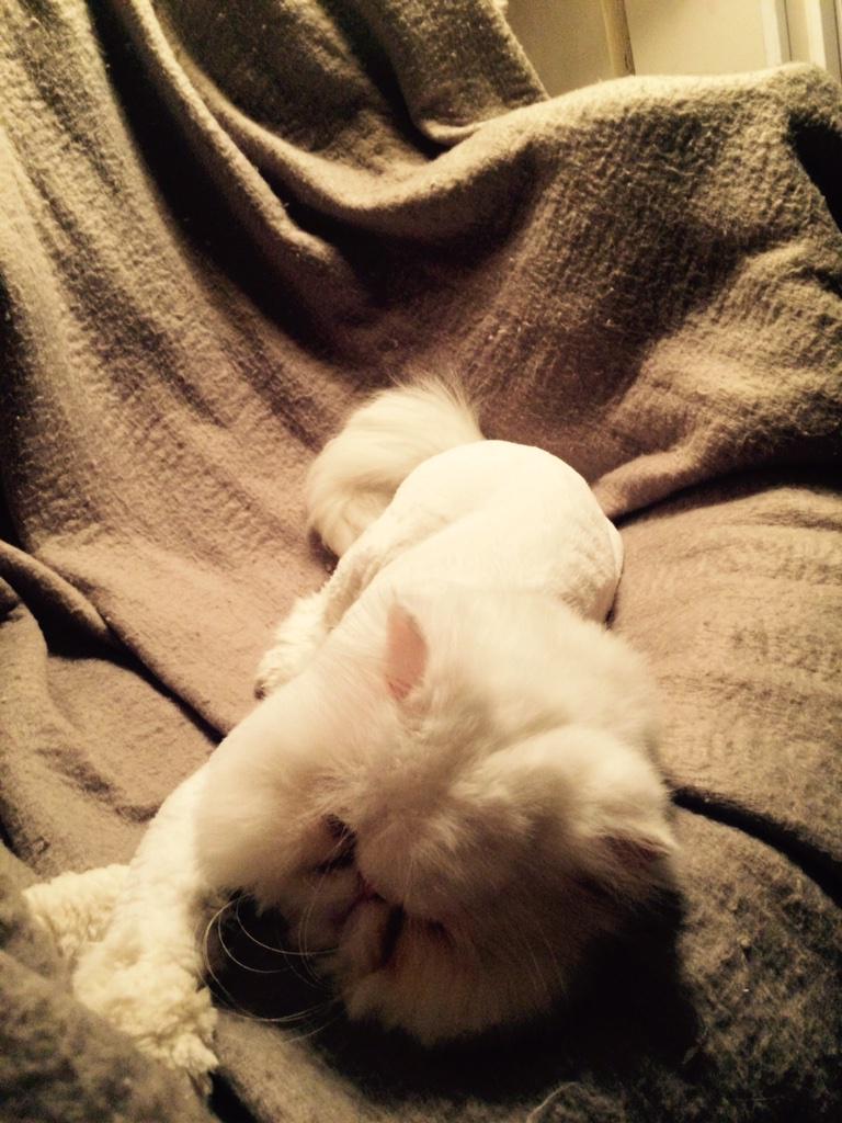 bigsby. crashed out on the heated blanket. big day: shots, bath and haircut. he's all fixed up now. :) darling. boy.pic.twitter.com/E4OBWWhWFO