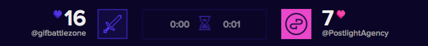 @ftrain here’s the final round of our team’s 8-person gifbattle tournament. it was a very productive day at workhttps://gifbattle.zone/b/-K9YaIFT6Re6hxEM_Hc1 …Thanks. Twitter will use this to make your timeline better. Undo