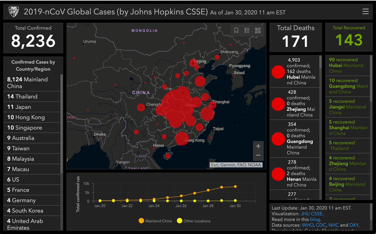 https://gisanddata.maps.arcgis.com/apps/opsdashboard/index.html#/bda7594740fd40299423467b48e9ecf6 …)。最新情報で随時アップデートしているけど感染の拡散には追いついてない感じ。今朝入った情報(https://twitter.com/spectatorindex/status/1223024394173206528 …)によると、