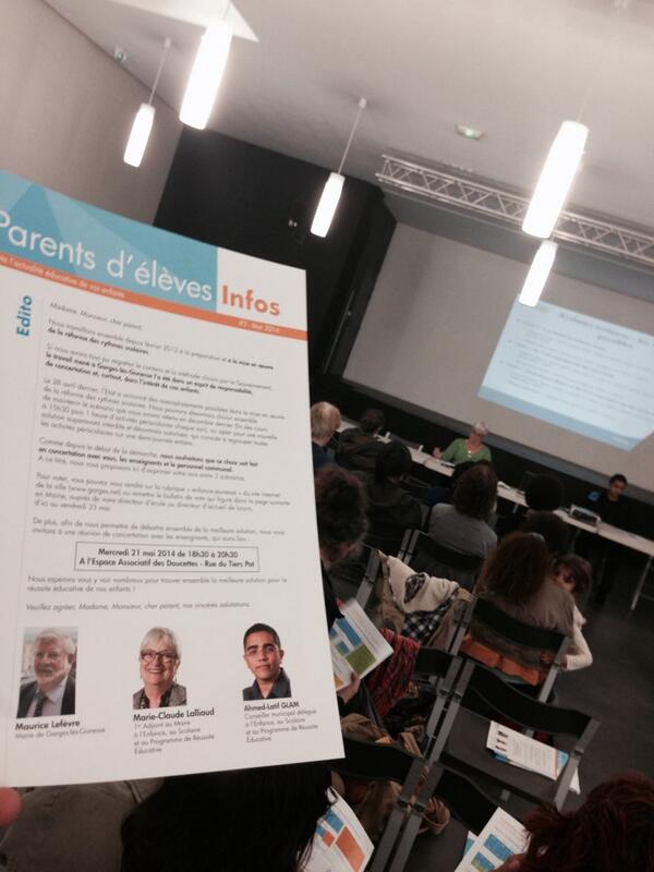 Réunion de concertation avec les parents sur la réforme des rythmes scolaires avec MC LALLIAUD et A GLAMpic.twitter.com/SRI6rbzVXH
