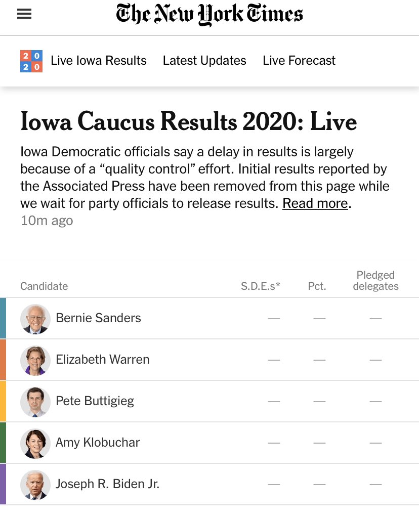 This is because the results they're going to release at 4pm will favor Buttigieg and then the final total, to be released at a later an far less trumpeted date, will favor Sanders.https://twitter.com/ShaneGoldmacher/status/1224746002948808704 …