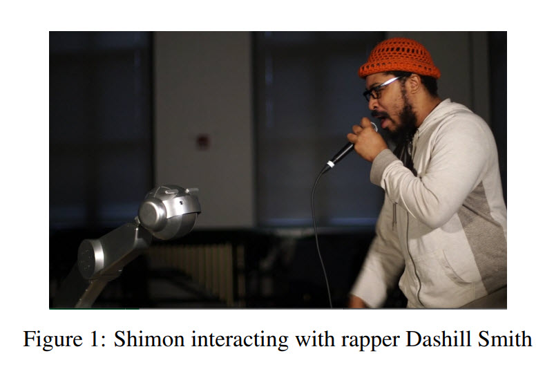 @ShimonRobot listens to free-style rapper Dash Smith and then generates original lyrics on the fly in response. The melodies were composed by Shimon and arranged by humanspic.twitter.com/JtKlGHUll0