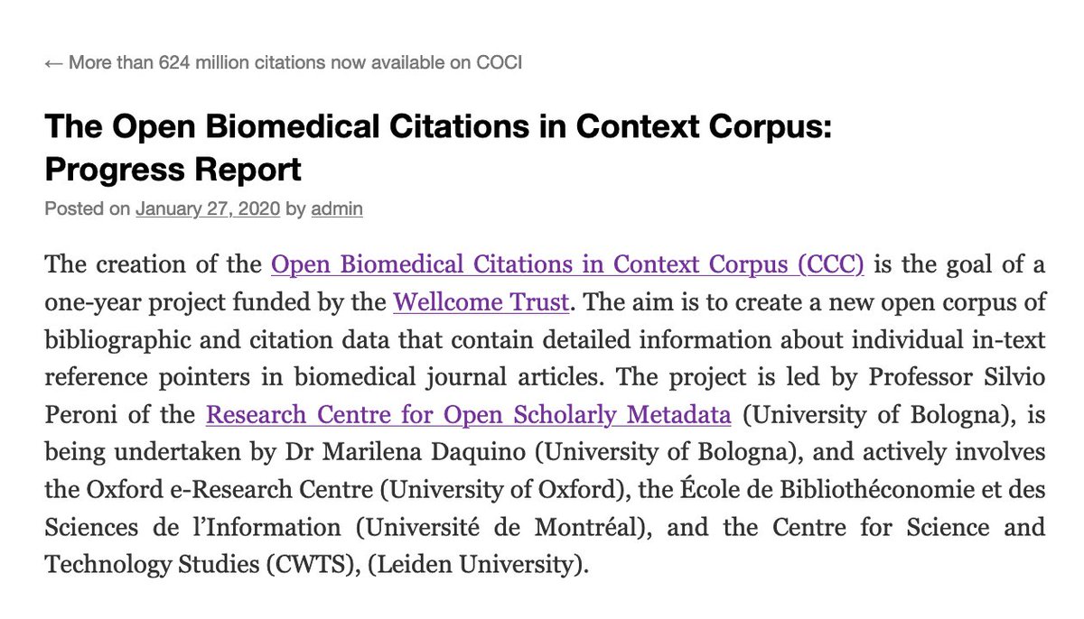 @wellcometrust – where@emmedaquino introduces her work on the#OpenCitations Data Model, data harvesting,#InTRePIDs, and query services https://opencitations.wordpress.com/2020/01/27/the-open-biomedical-citations-in-context-corpus-progress-report/ …pic.twitter.com/L5zE9uQtn8