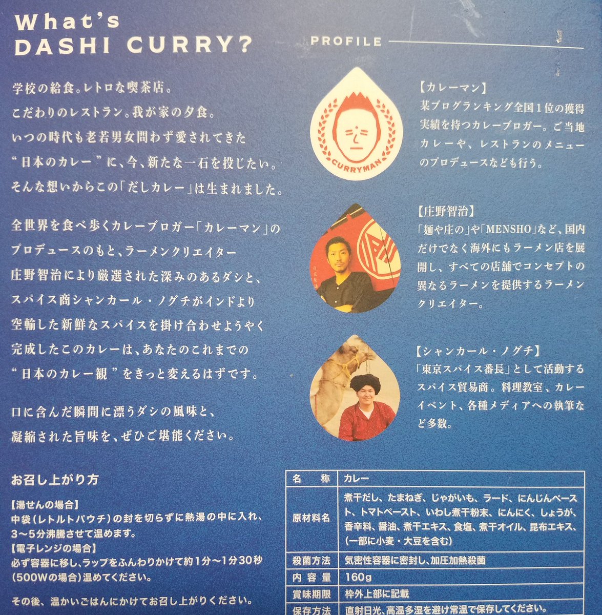 堀江貴文氏@takapon_jp も唸ったという、カレーマンさん、ラーメンクリエイター庄野智治氏、東京スパイス番長シャンカール・ノグチ氏のコラボ「だしカレー」 CAMPFIREのリターンで届いた。 濃厚な出汁が効いていてウマー!pic.twitter.com/sGkyNMLMmE