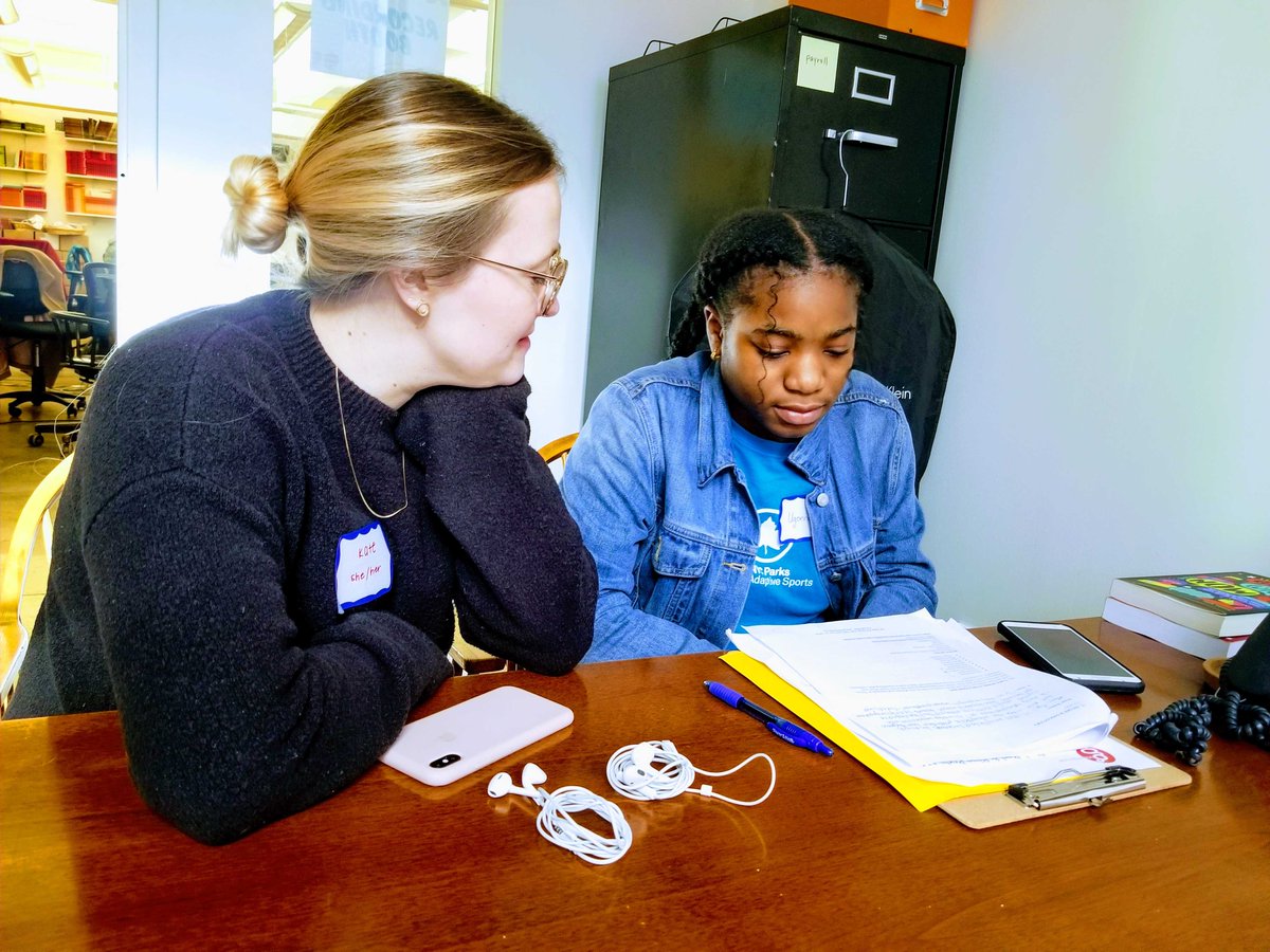 What do our mentees + mentors get up to during pair sessions? Everything from writing, editing, applying to college, and even digging into delicious food, as pair Kate Riley and Mikayla Augustin did! Bibs required, they said, as writing is hard work!