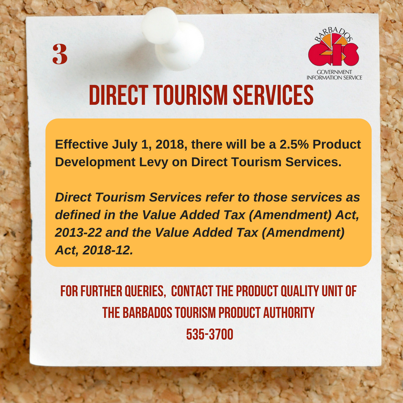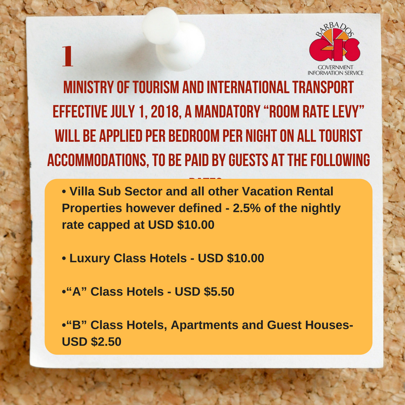 New ROOM RATE LEVY beginning July 1, 2018. Read the graphics to learn more. To download the Value Added Tax (Amendment) Act, 2018-12 go to http://gisbarbados.gov.bb/download/value-added-tax-amendment-act-2018-12/?wpdmdl=507674 … and the Value Added Tax (Amendment) Act, 2013-22 go to http://gisbarbados.gov.bb/download/value-added-tax-amendment-act-2013-22/?wpdmdl=507673 …pic.twitter.com/ZnT6K5HBMy
