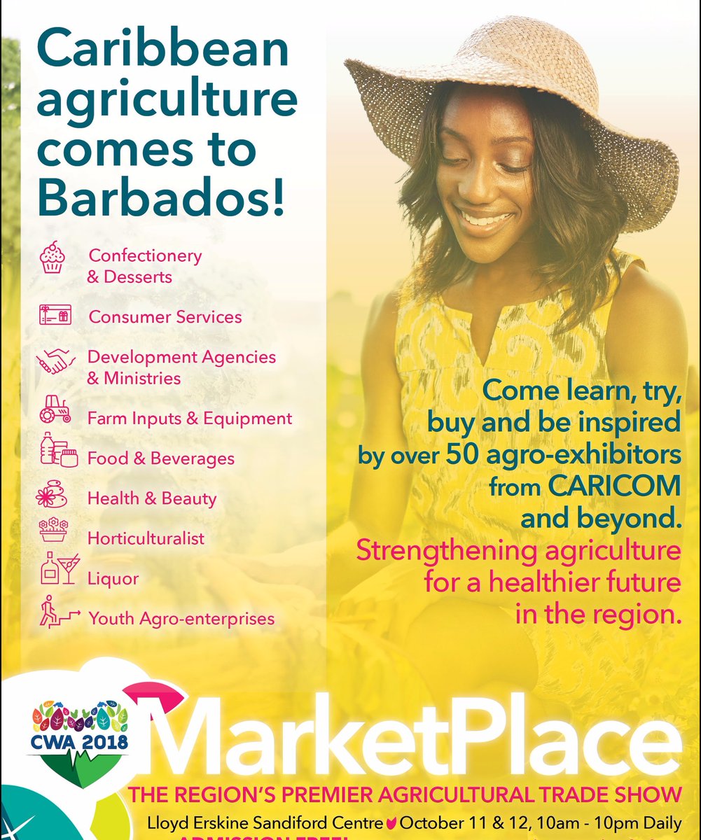 Caribbean Agriculture comes to Barbados at the CWA MarketPlace trade show and exhibition, free of admission to the public from 10:00am to 10:00 p.m. daily, October 11 and 12, at the LESC in Barbados.