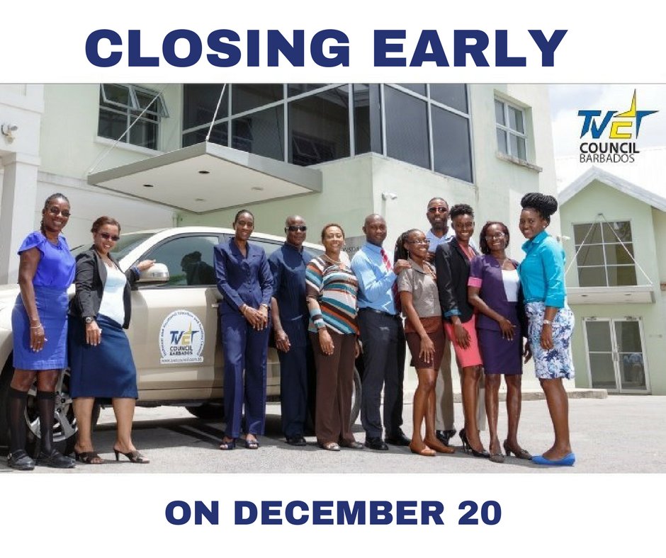 The TVET Council will be closed for a staff function from 11:30am tomorrow. The office will reopen on December 21, 2016 at 8:15am.pic.twitter.com/SIFfpP0iJO