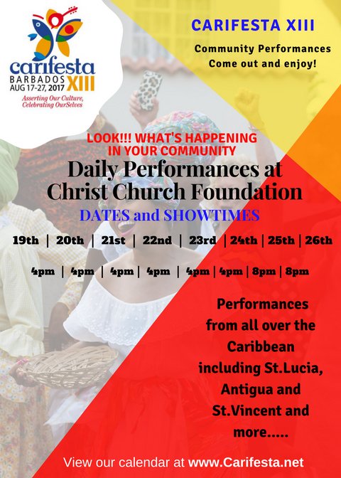 Mark your calendar for CARIFESTA XIII events at Christ Church Foundation, Lester Vaughan School and Alexandra School.pic.twitter.com/VCtC0BAZVV