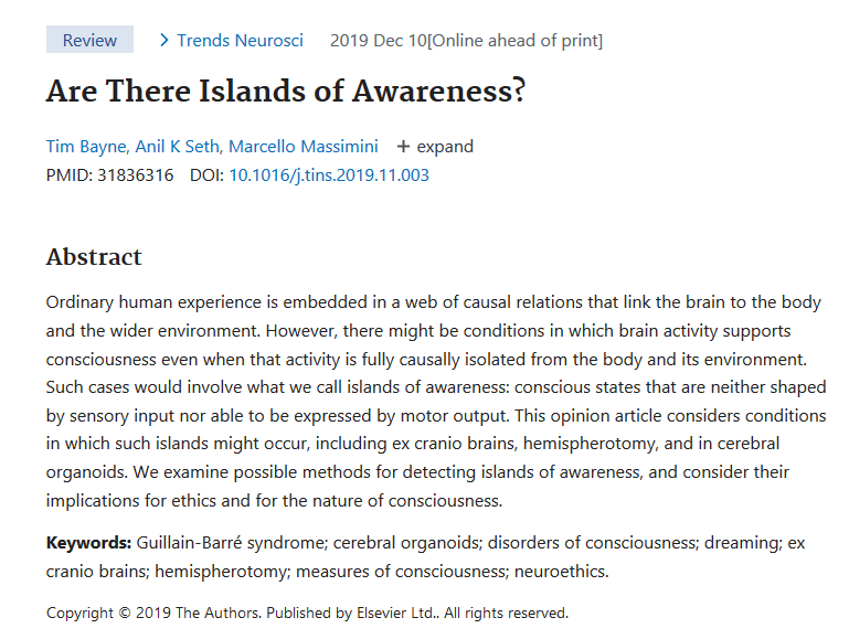 Are there conscious states that are neither shaped by sensory input nor able to be expressed by motor output? https://pubmed.ncbi.nlm.nih.gov/31836316-are-there-islands-of-awareness/?dopt=Abstract … feat.
