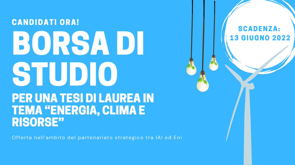 @eni! Vuoi scrivere la tua tesi di laurea sui temi dell'#energia? L'opportunità per farlo con il supporto dei ricercatori IAI e per poter ricevere 4.000€ a titolo di diritto d’autore.