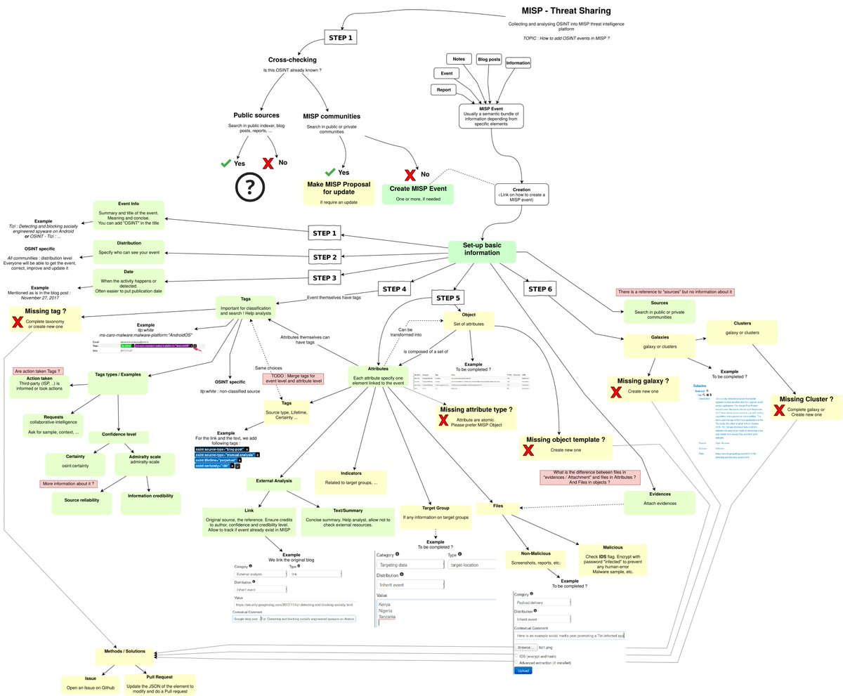 @MISPProject events from gathered#OSINT information. Then our new colleague@VincentFALCONI3 (who wrote a book about mind map ;-) improved it in a day. https://github.com/adulau/misp-osint-collection/ …#threatintel new ideas welcome.pic.twitter.com/XMFS0AyWWS