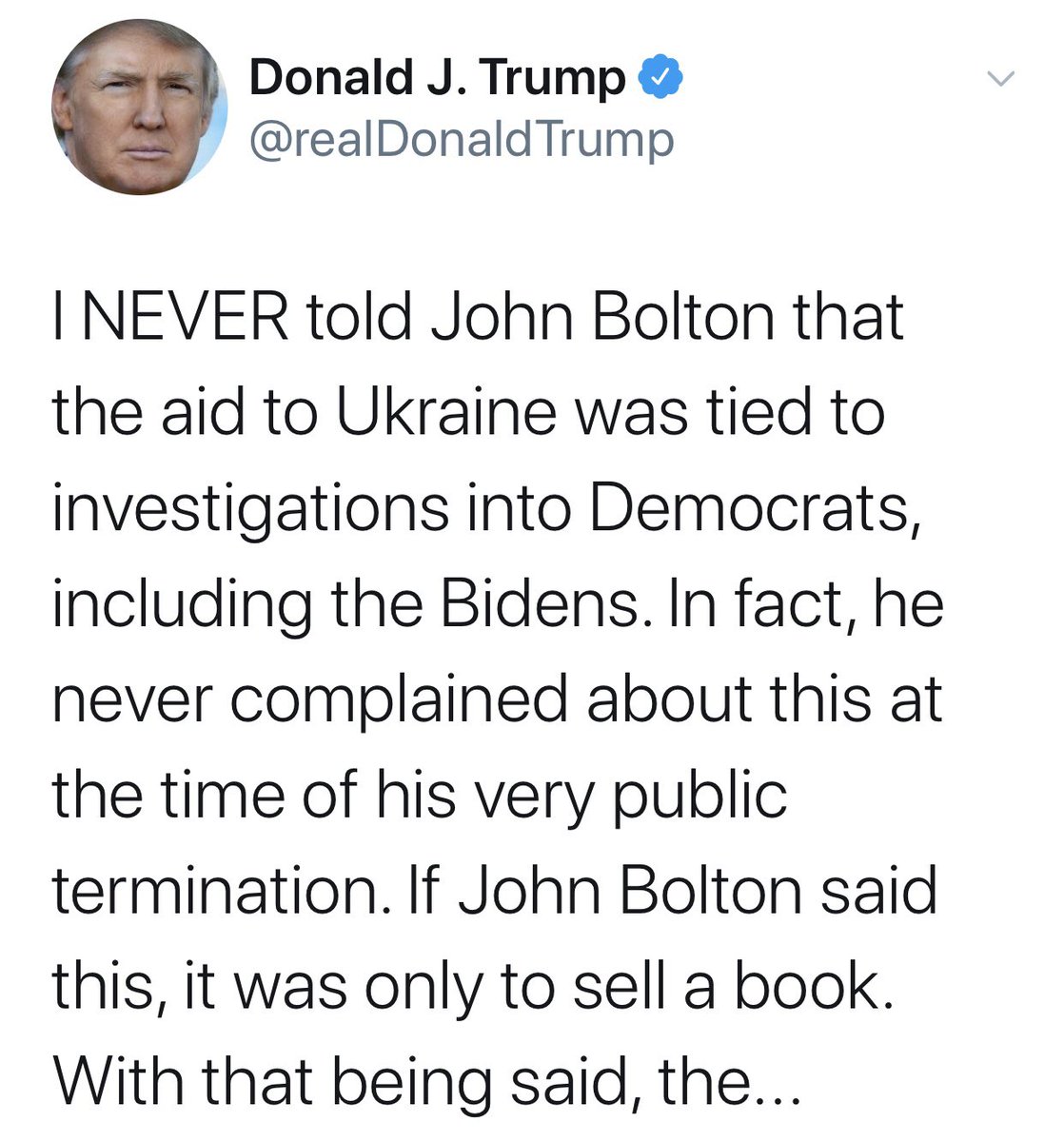 By sending this tweet, the self-proclaimed “very stable genius” just waived any lingering claim that he could stop Bolton from testifying based on executive privilege. Well done, Mr. President.pic.twitter.com/4SlLXZxJuD