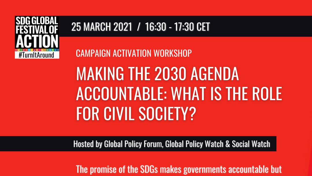 The promise of the SDGs makes governments accountable BUT who is to be made responsible for global issues like climate, the pandemic or finances?
