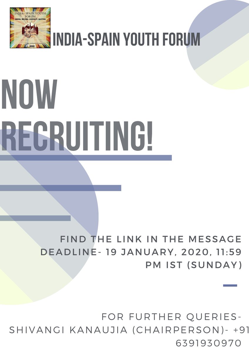 We are extremely excited to announce that India Spain Youth Forum Forum is now recruiting members for the session 2019-20.