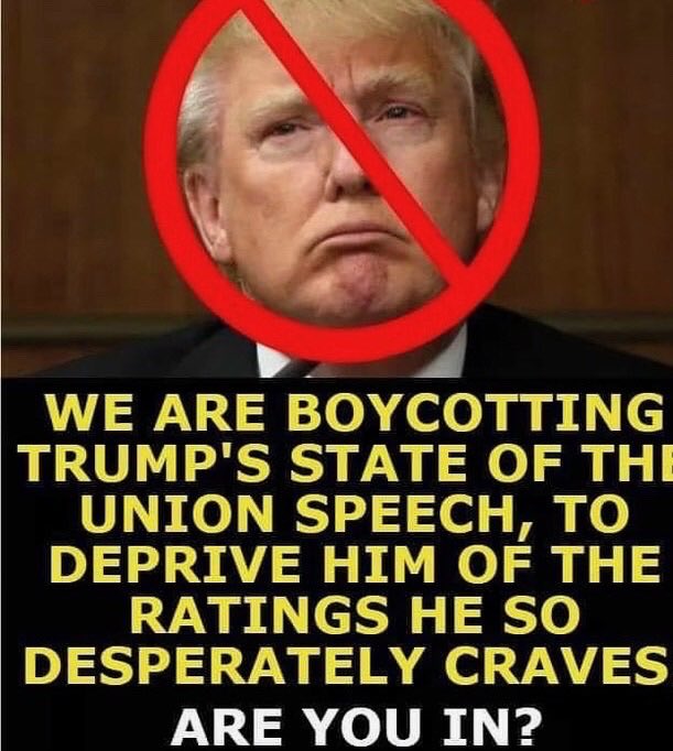 I’m calling for a boycott of trump state of the Union address who’s with me?