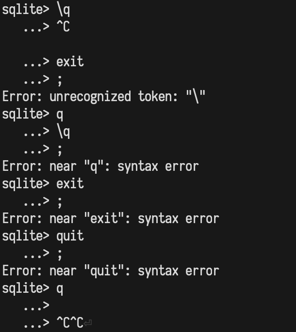 I'm laughing at jokes about quitting vim. Here's me trying to quit SQLitepic.twitter.com/z62CE1qnSy
