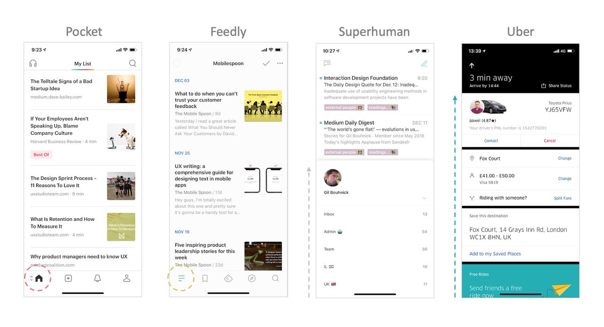 5. ナビゲーションがボトム化 画面上部のナビゲーション機能は最早指が届かず、全て画面下に集約される。 Pocketはハンバーガーメニューをタブに収納。Feedlyも同様。 IMDbは検索バーが画面下部へ。MicrosoftのTo-Doもリッチな機能がキーボード上部に。pic.twitter.com/lKoheVxImg