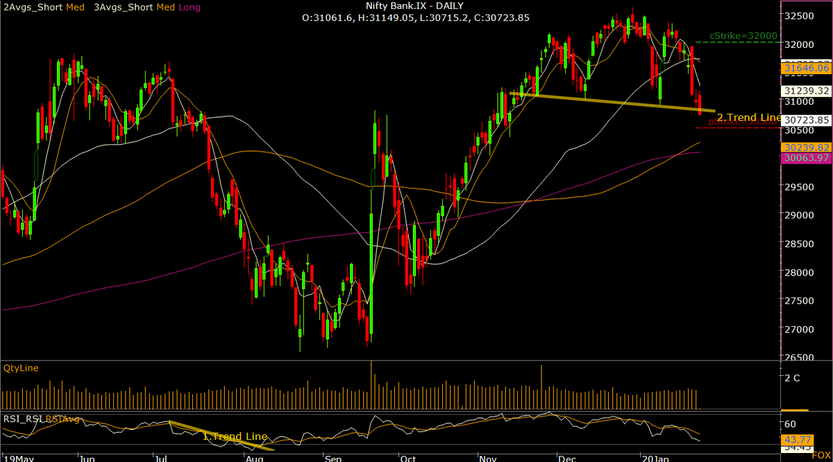 #Banknifty: Weekly close pivotal Close below 30,996 (Dec low) would confirm bear doji reversal. Dec's candle was Doji. RSI charting lower highs (divergence). Would be a sell on rise market if bearish monthly close confirmed.pic.twitter.com/5oJBdkXZHk