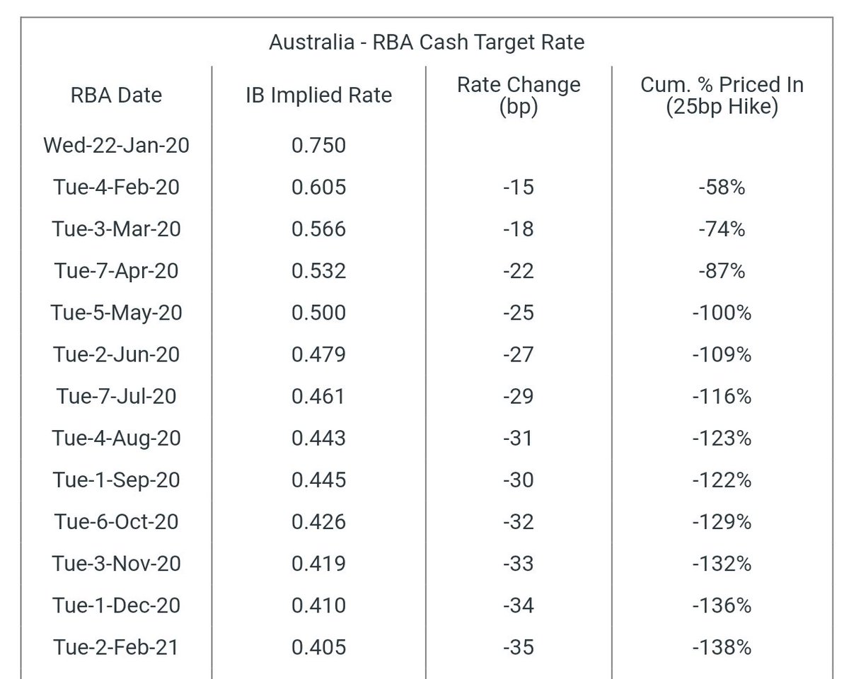 RBA rate cut now fully priced by May, with growing odds of a second in H2. Westpac table.pic.twitter.com/62RAXTLqJf