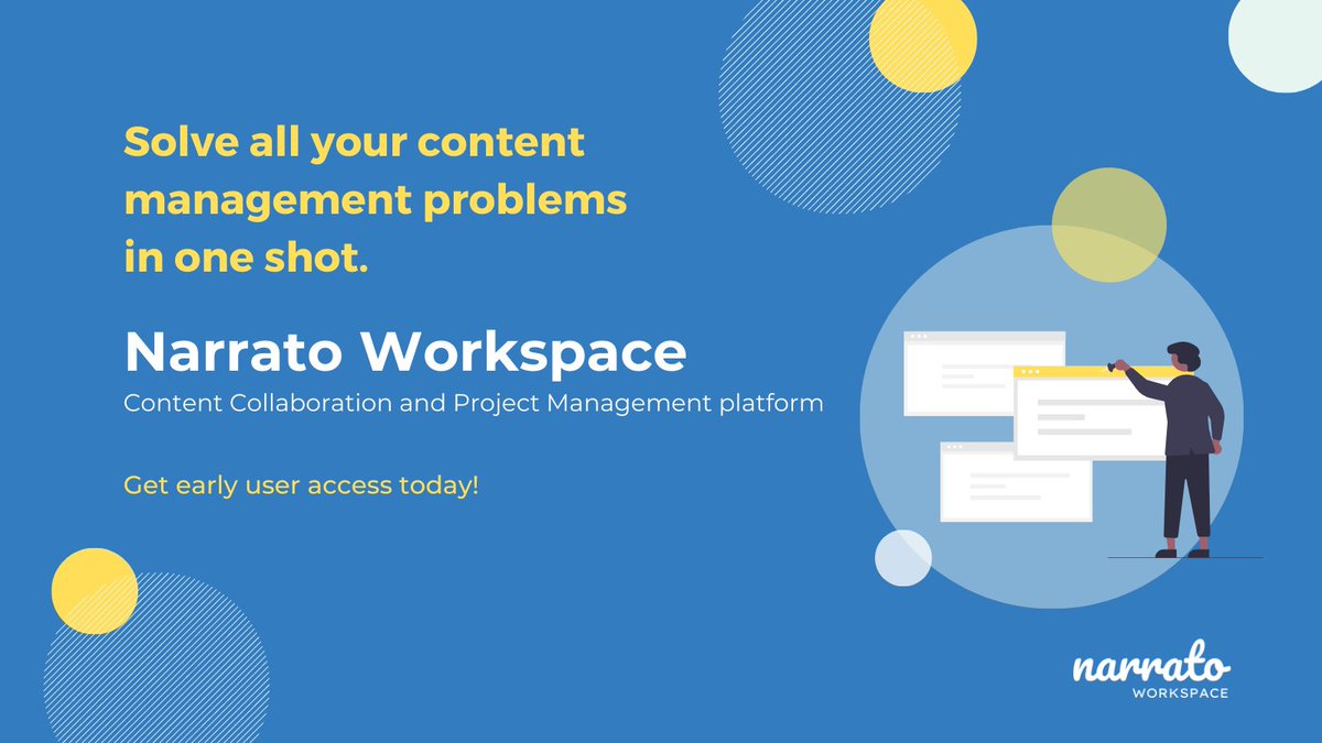 Managing content creation on too many docs & emails and still finding it hard to stay on top? You need to get free early user access to Narrato Workspace - a content collaboration & workflow management platform. Check it out here https://narrato.io/content-workflow-management-software …