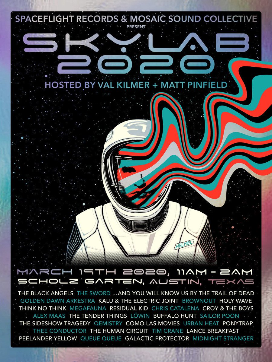 #SKYLAB2020 Mar 19 @ Sholtz Garten@TheSword@TheBlackAngels@TrailOfDead@ThinkNoThink@GoldenDawnARK@Brownoutband@BadBoyCroy@ThElectricJoint@LowinATX + many more presented by@SpaceFlightRec +@MosaicSoundCo Hosted by@ValKilmer@MattPinfield#SXSW20pic.twitter.com/VxckGcfInw