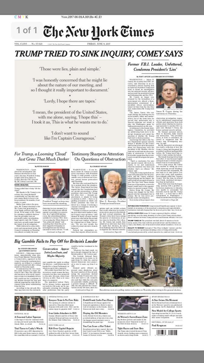 News Analysis: Comey's testimony was the most damning by a law enforcement official against a president in decadeshttp://nyti.ms/2sZJumw