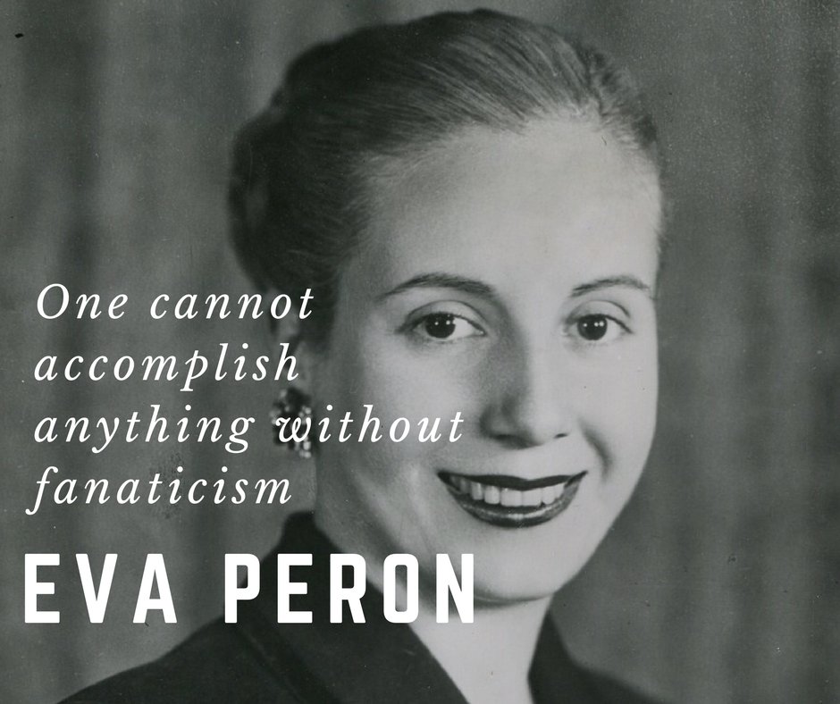 “One cannot accomplish anything without fanaticism.” - Eva Perón