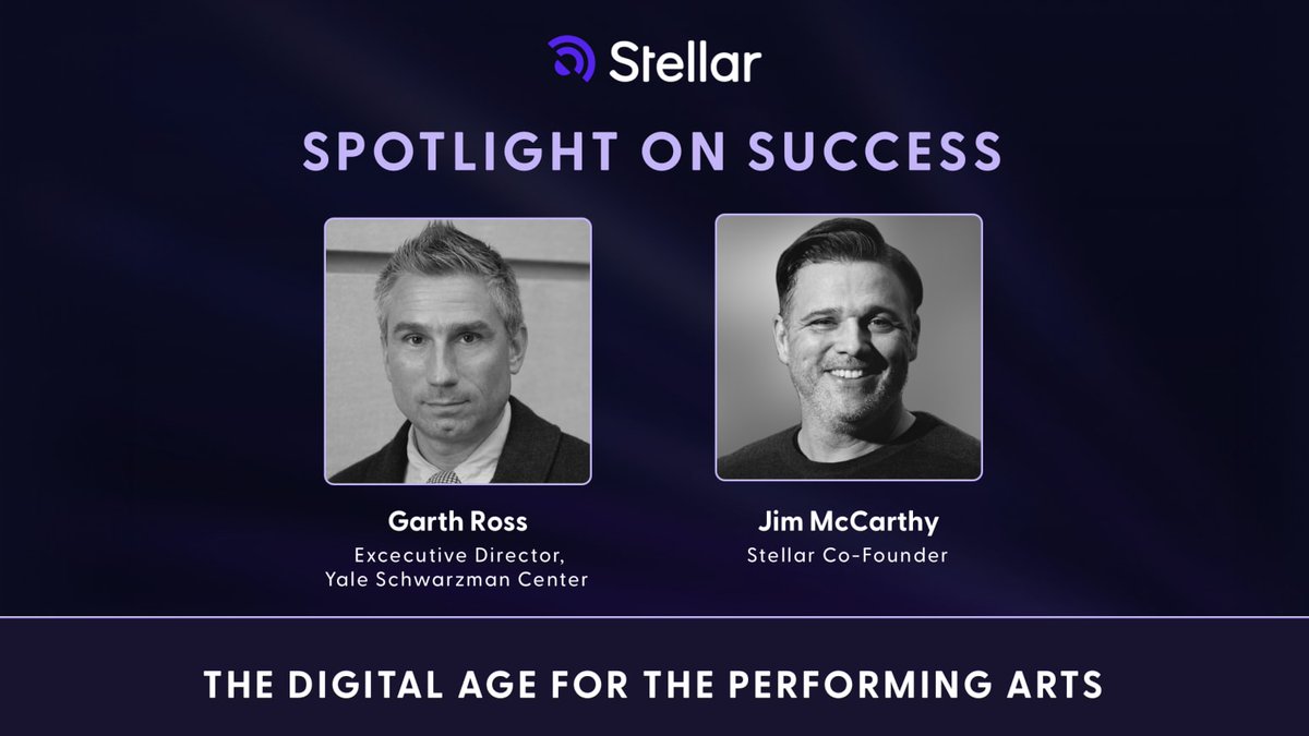 Tomorrow 6/24 @ 3PM: Spotlight on Success: The Digital Age for the Performing Arts. Join Stellar Co-Founder Jim McCarthy and Garth Ross, Executive Director, YSC, for a 50-minute installment of Spotlight on Success, presented by Stellar Academy. Register: https://bit.ly/3wSsvDV pic.twitter.com/rNDXe7Qefs