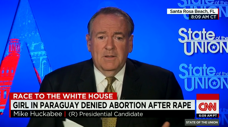 Allow abortion for a 10-year-old rape victim? No, says U.S. pres. candidate Mike Huckabee: http://cnn.it/1Ph3eXN pic.twitter.com/gnKL8uEmMu