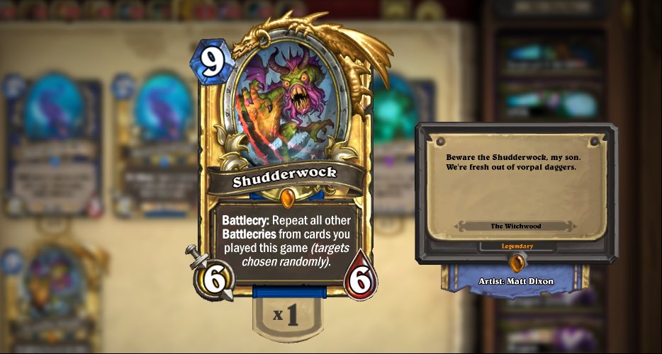 Okay Hearthstone just 6 legendaries in 180 packs, guess that’ll teach me not to rip while working. And to never use the cupcake card back for opening. Only crafting a golden Shudderwock can save the day...pic.twitter.com/XuMx5pngvS