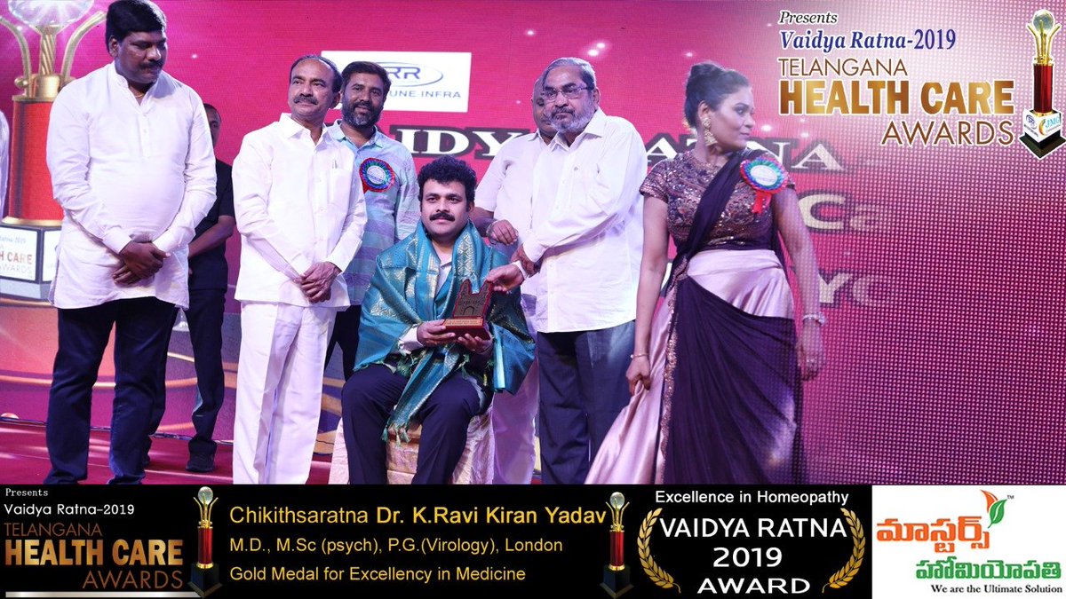 Master's Homeopathy @trusthomeopathy#Chikithasaratna award winner Dr.Ravi Kiran has been Awarded Excellence in Homeopathy#VaidyaRatna 2019 by the Hon'ble Health Minister of Telangana Etela Rajender Garu at Telangana Vaidya Ratna Awards 2019 ##DrRaviKiran#TelanganaVaidyaRatnaAwards#Homeopathy#MastersHomeopath pic.twitter.com/VkKRgP4j1X1 reply 0 retweets 0 likes - Show replies