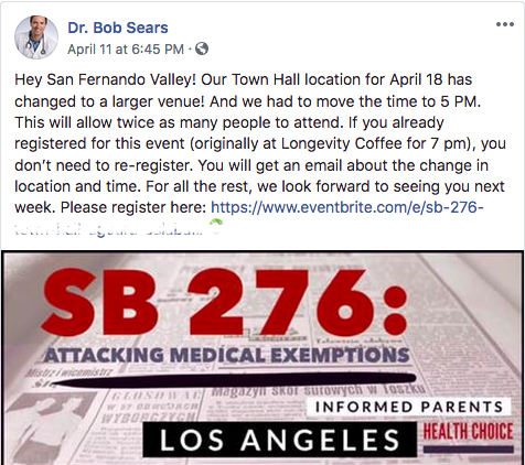 Hey San Fernando Valley, while Bob Sears tries to attack the new vaccine bill at his little town hall, just remember that an Orange County infant just died of pertussis, a disease that is typically preventable if pregnant moms get a Tdap vaccine. #VaccinesWork #SB276 pic.twitter.com/RrIStoTg00