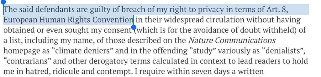 Including him among as “climate deniers”, “denialists” and “contrarians” violates his right to *privacy*? That’s… creative.
