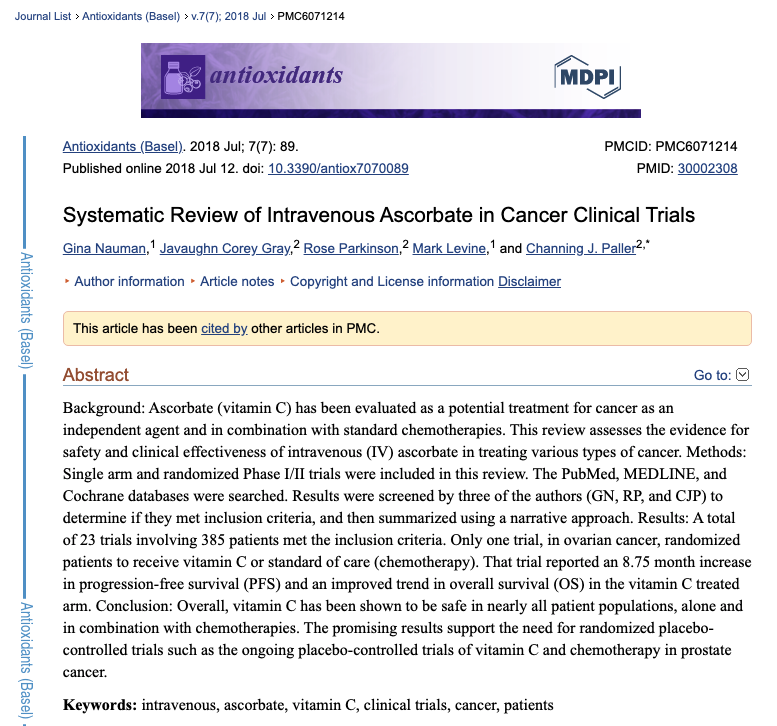 This short article on the NIH website acknowledges that intravenous vitamin C is safe, that early studies showed promise, and does not suggest that intravenous vitamin C has ever been shown not to work in RCT. https://www.cancer.gov/about-cancer/treatment/cam/hp/vitamin-c-pdq …pic.twitter.com/0w8tZFqlyl