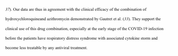 I think if you put the French data + one from Wuhan China that appeared today + the prior trial from China together it shows: A: this combination likely improves outcomes in early, mild(er) disease. B: Once the patient has developed ARDS/CRS other Rxs (anti-IL6?) take primacy.