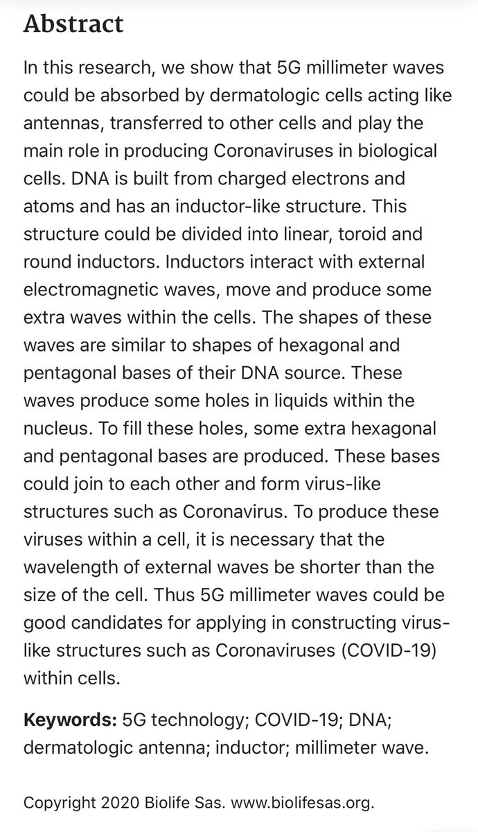 WTF? Why is this appearing on the NHS/PubMed website? “5G Technology and induction of coronavirus in skin cells” Link: https://pubmed.ncbi.nlm.nih.gov/32668870/ pic.twitter.com/YTwyelvf4n