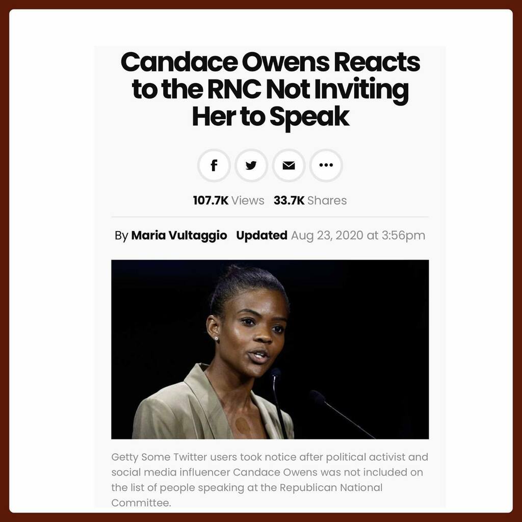 4 years of buck dancing, selling your soul, and being a shameless, sycophantic, white supremacy apologist, and this is how massa treats you Candace? A guess you’ll have to settle for the occasional butter biscuit. #RNC #CandaceOwens #AuntieRuckus https://instagr.am/p/CEQ_vk8DOxY/ pic.twitter.com/VyjT4xMvCh