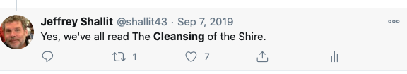 James’ Tolkien analogy is crap. If anything, we’re at the chapter (which was unfortunately left out of the movies), “The Cleansing of the Shire.”