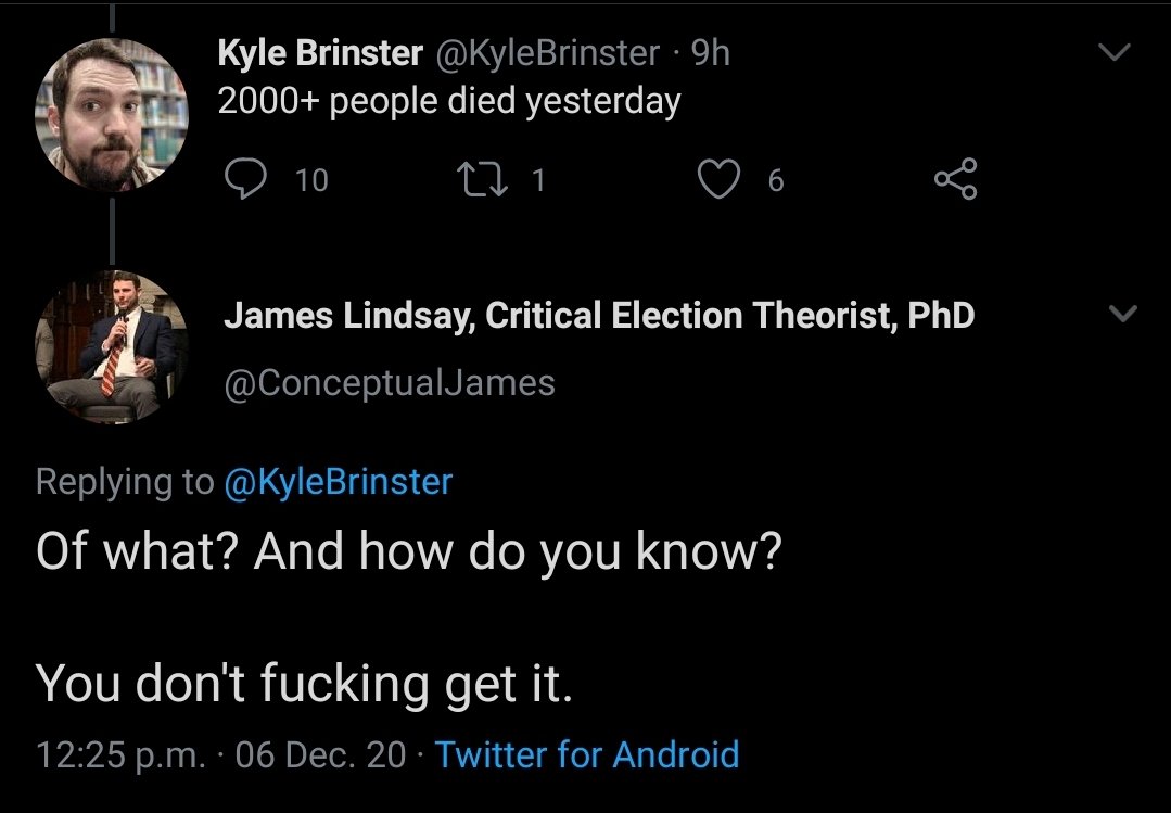 James Lindsay is now in his Covid denial stage. His decline is happening even faster than I would've expected.pic.twitter.com/4gO0adK32s